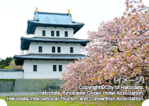 北海道唯一の城下町であり、“さくらの里”としても知られる。日本最北の和式城郭である「松前城」は町のシンボル。その周辺は「松前公園」として整備され、250種10,000本もの桜が咲き誇る桜の名所。
