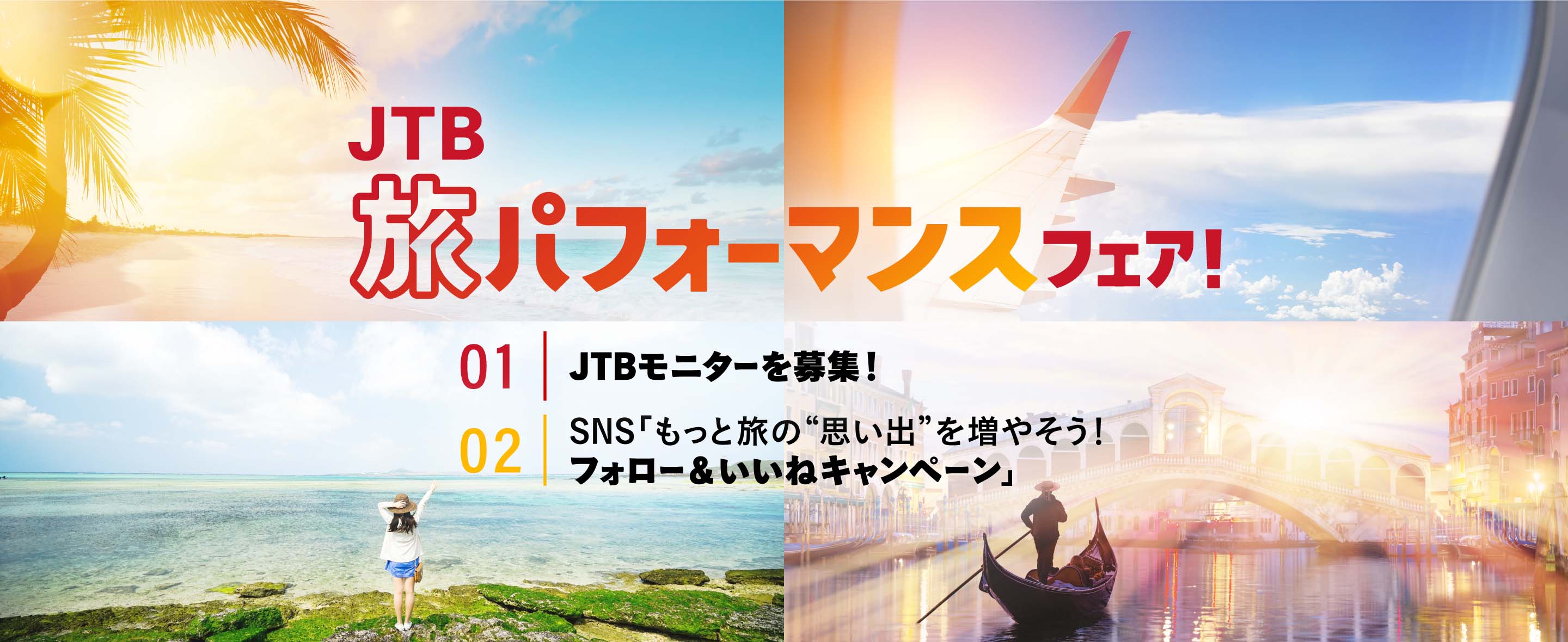 JTBの旅は「価格」「満足度」「こだわり」「楽しさ」など様々な面において 総合的に「良い」旅ができる=“旅パフォーマンス”が高い!! JTBの“旅パフォーマンス”の高さを体感してもらうためのフェアを開催中です♪