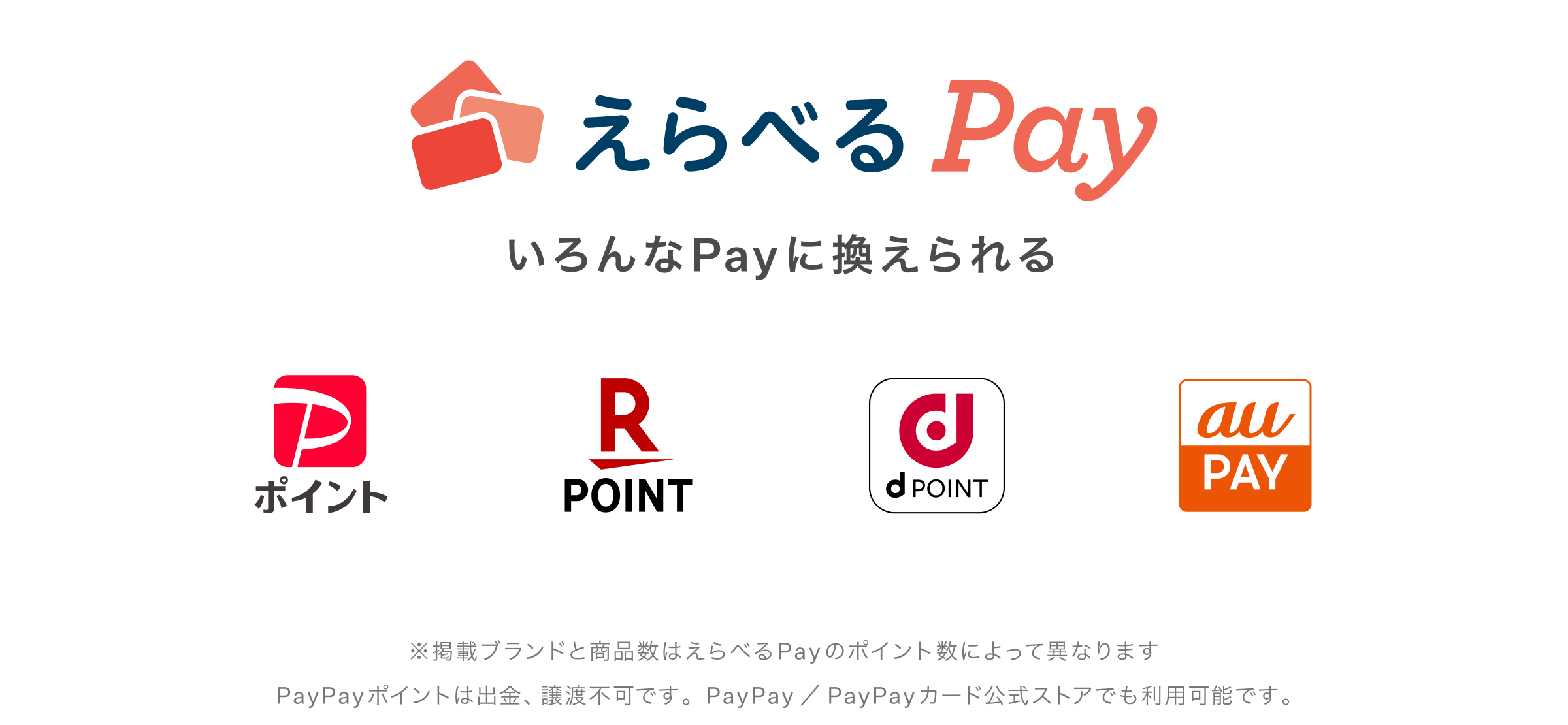 - ラインナップおよび交換に必要なポイントは付与されたえらべるPayにより異なり、変更になる場合がございます。またえらべるPay内のポイント交換レートは商品により異なります。記載された必要ポイント数をよくご確認の上、商品と交換ください。