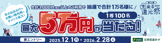 抽選で1万名に最大5万円が当たる!冬来る還元祭2025実施中