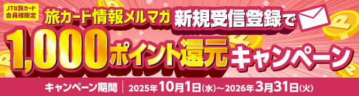 50名様にJTBトラベルポイント1,000ポイントプレゼント!