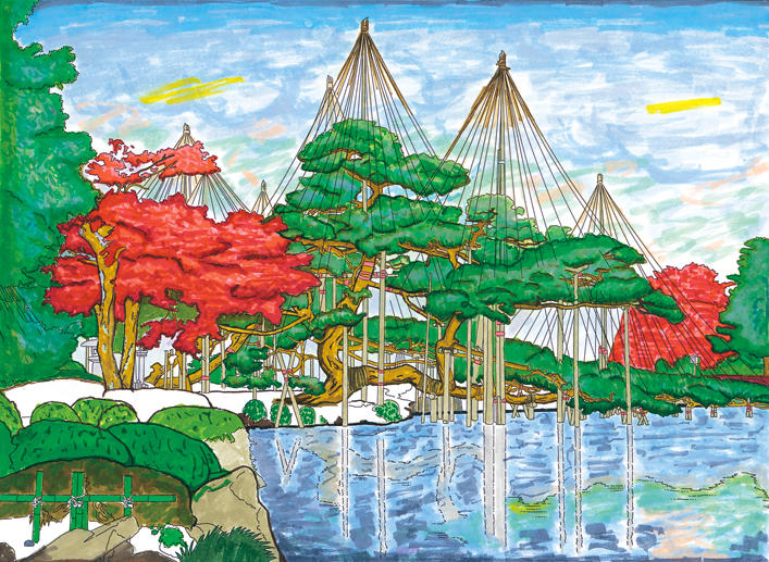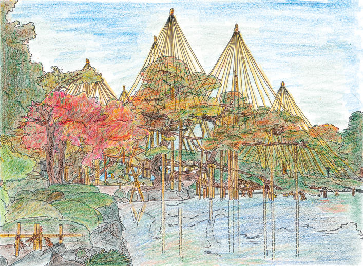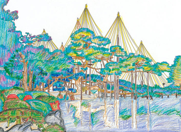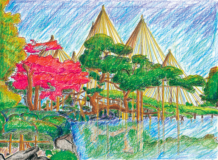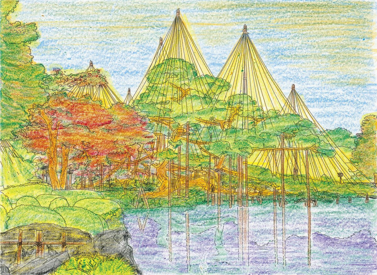 オリジナルぬりえ 作品のご紹介12-1月号とともにお送りした「石川 兼六園の雪吊り」について、たくさんのご応募ありがとうございました。