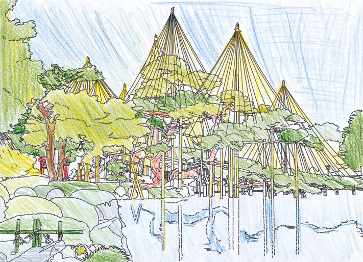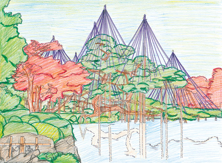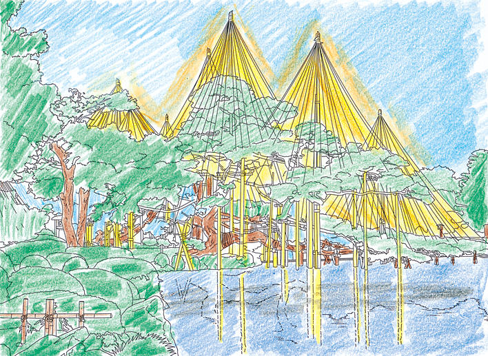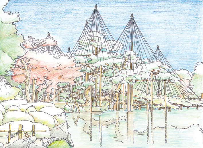 四季折々の美が楽しめますが、なかでも雪吊りが施された景色は、北陸の冬の風物詩といえるでしょう。
