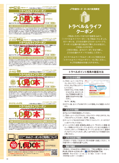 JTB旅カード ゴールド会員誌「トラベル&ライフ」の巻末には、JTBの旅行に使える6,500円相当(Webクーポン含む)のクーポンが付いています!