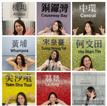 駅名サインの前で写真を撮って、後からコラージュすれば香港らしい思い出の一枚に。