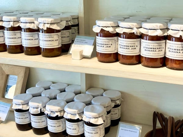アジアンテイストのバリ雑貨や、自然派食品やコスメのショップが多くあります。ジャムや天然塩のショップ、「コウ・キュイジーヌ」では、インドネシアのフルーツを使った自然な甘さの手作りジャムが並びます。可愛らしい瓶に入っているので、お土産にもおすすめ!
