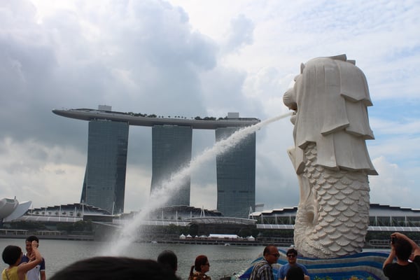 シンガポールといえばこちら!ついにマーライオン像とご対面!テレビや雑誌でおなじみの光景に、写真を撮る手が止まらないかも!?実はマーライオン像の後方には、2mほどのミニ・マーライオン像もいるのでこちらも忘れずに要チェック。