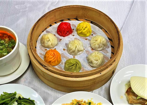 小籠包はキムチ味(オレンジ)、お茶の味(緑)などの変わり種も!