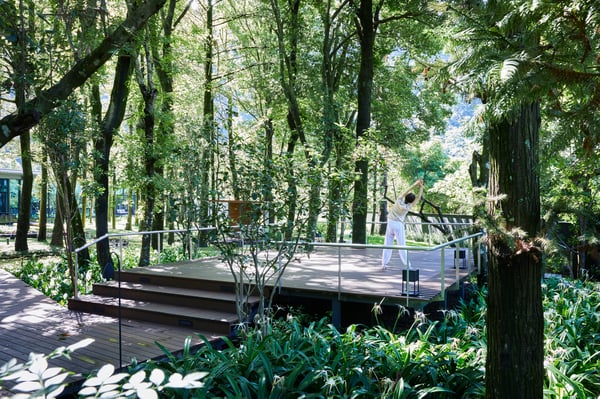 木漏れ日のもと、新鮮な森の空気を取り入れ、よい「氣」を身体に循らせます。