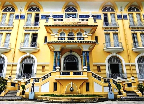 建物の外観はコロニアル建築で明るい黄色のパステルカラーが可愛らしい、ホーチミン市立美術館