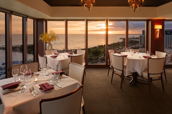 ハワイ最後の夜は、高級感漂う「シグネチャー・プライム・ステーキ&シーフード」へ。 アラモアナホテル最上階の36階からの絶景を楽しみつつ、 最高級の熟成ステーキや新鮮なシーフードを堪能できます。