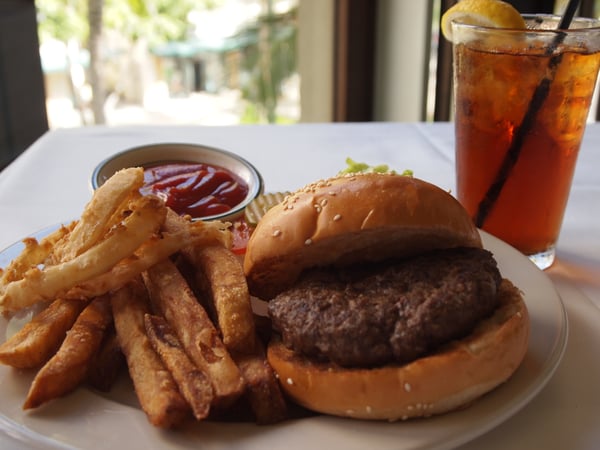 お昼はウルフギャング・ステーキハウスでランチ。ハンバーガーやロコモコなどのランチメニューからお選びいただけます。便利なミールクーポンだから、予約なしで当日のスケジュールに合わせてランチが食べれるのも便利!