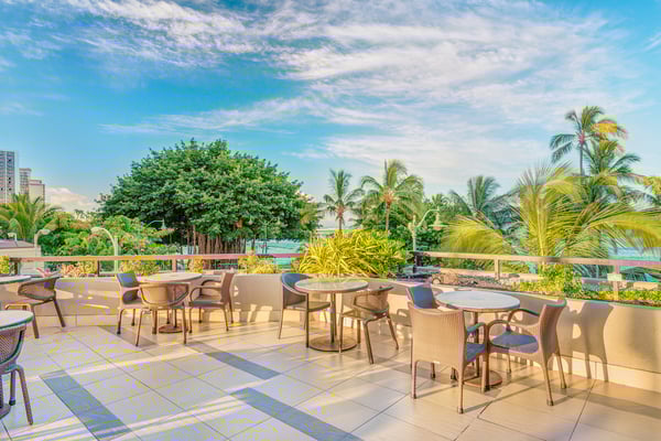 宿泊者専用のクラブラウンジでは、屋外テラスで目の前に広がるワイキキビーチを眺めながらコンチネンタル朝食をお楽しみいただけます。食後はコーヒーを飲みながら、お二人でゆっくり今日のディナーの予定を立てるのも素敵ですね。