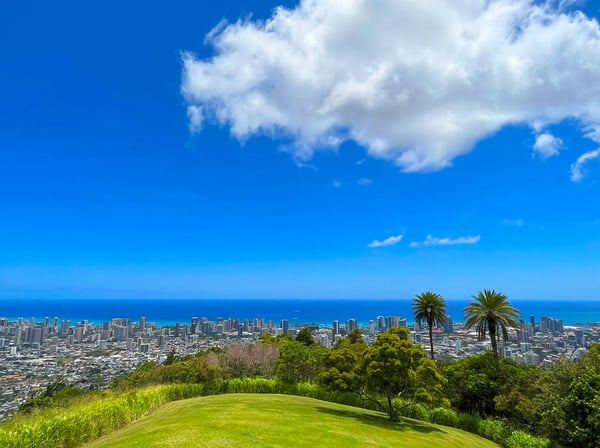 山頂からはワイキキの絶景を望むことが出来ます。その後は、有名なカフェ・カイラで朝食を。フルーツたっぷりのパンケーキはハイキング後でもさくっとお召し上がりいただけます!