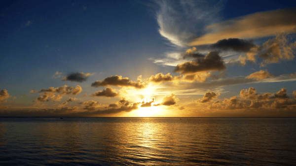 透明なサイパンの海。人の少ないビーチ。夕暮れの濃い空。そして夜には南十字星が見えるという。(時期目安:1月ー6月)
