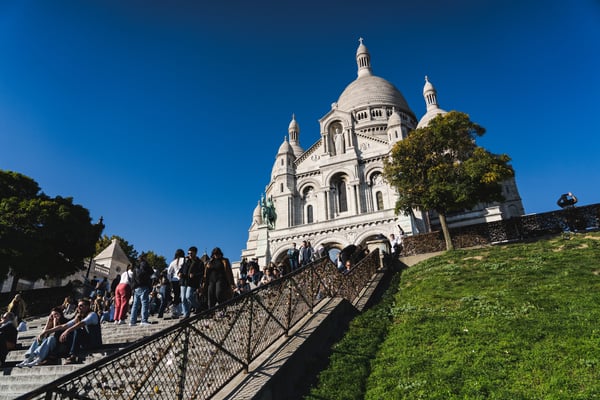 丘の上に立つ白亜の「サクレ・クール寺院」。寺院前からパリの街を一望! ︎©KOS-CREA