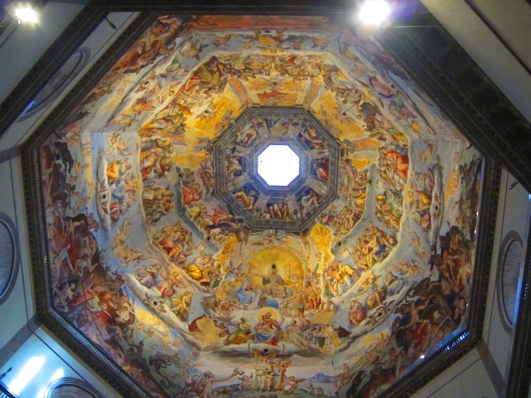 ドゥオーモのクーポラは階段を上る途中での美しい天井画と遮るものもない壮大な景観を楽しむことができ