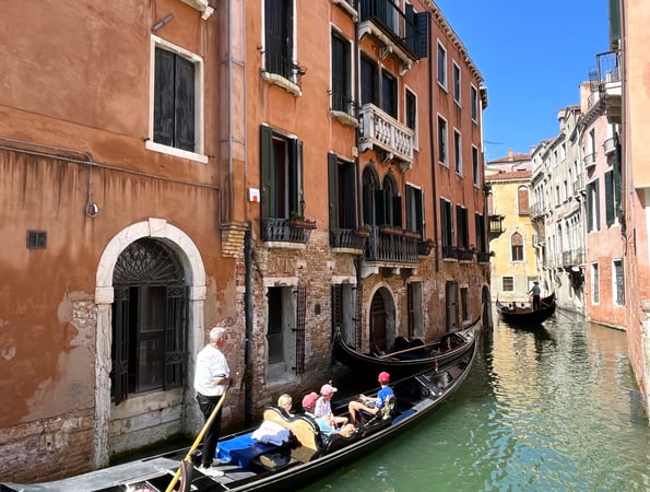 ゴンドラから眺める大運河、小運河は地上から見た景色とはひと味違って見えます。