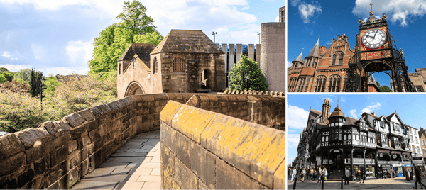 リバプールから電車で約40分、ロンドンからも列車で約2時間でアクセスできるチェスターはイングランドの歴史を体現する街です。