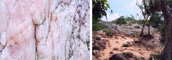 最後にご紹介するのは、世界最大級のローズクォーツ(紅水晶)でできた岩山。