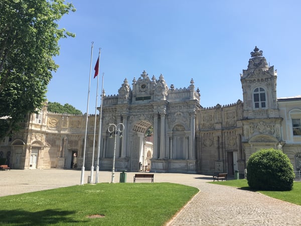 現在は迎賓館として利用されている「ドルマバフチェ宮殿」。門の上部にはアブドゥル・メジト1世の花押を見ることができます
