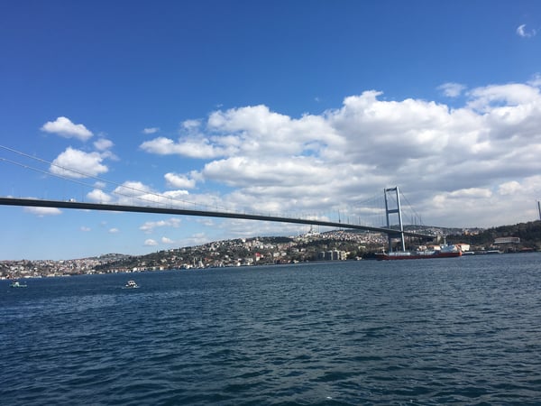 大陸をヨーロッパとアジアに分けるボスポラス海峡沿いを観光船に乗ってクルーズを楽しみます。