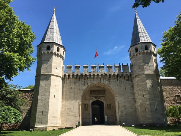 「トプカプ宮殿」見学の際の入口となる表敬の門。2本の塔が目印