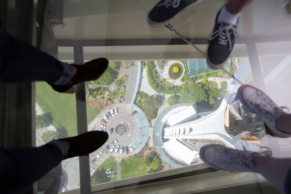 展望台の床の一部はシースルー!実はこの床、360度回転するガラスの床の展望台なのです。フロアの3分の2がガラス張りになっていて、まるで空中に浮いているかのようにスリリング。