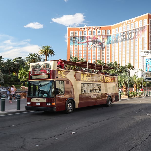アメリカ各地で大人気の2階建てオープンバスでラスベガスを満喫しよう。ストリップ通りとラスベガスのダウンタウンを2階建てのオープンバスでラスベガスの街を観光しよう!(1日券) ご自身で、ホップオン・ホップオフ観光バス停車箇所に向かい、乗車券(1日券)を提示し、ご乗車ください。10:00~16:00の間、30~60分おきに運航しています。(時間内で乗り降り自由)