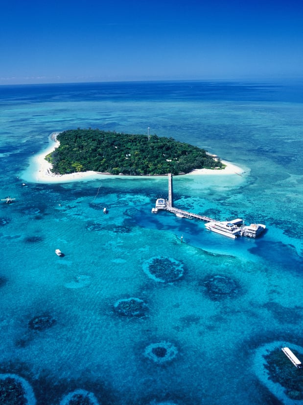 グレートバリアリーフに浮かぶ島、グリーン島(空撮)。