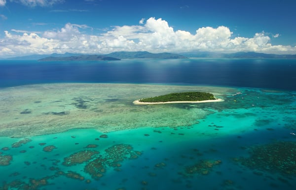 グレートバリアリーフに浮かぶ島、グリーン島(空撮)