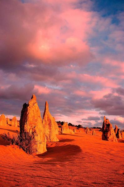 夕日に照らされ、真っ赤に染まったピナクルズは息を呑むほど神秘的!