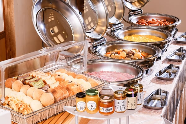 約40種類の和と洋の料理が並び、地元の柑橘ジャムも好評の朝食