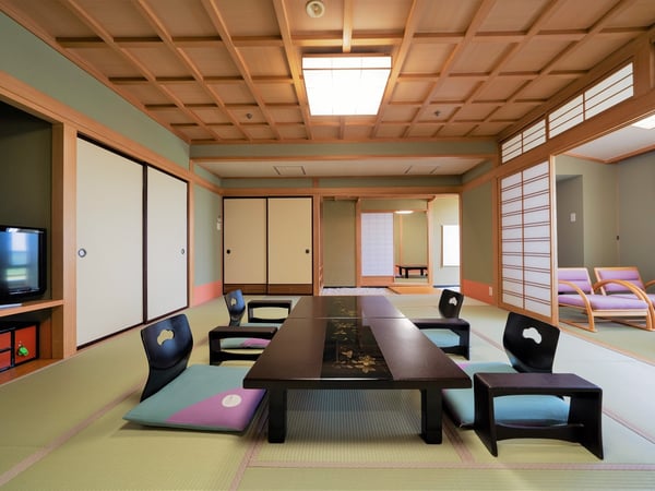 ファミリーに人気なのが「ゆうゆう館」。3タイプの客室は和室が中心で、大人数でもゆったり過ごせる造り。フラットでクッション性のある畳の上なら、小さな子ども連れでも安心して滞在できます。田園風景や中庭を望む穏やかな眺めが広がり、布団を並べて寝る団らんのひとときは、家族旅行ならではの思い出をつくってくれるでしょう。