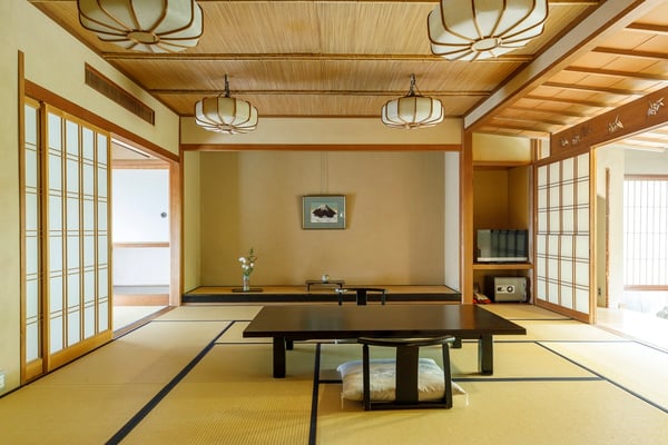 和の伝統と意匠が施された建築美を魅せる露天風呂付きのスイートルーム「大観」