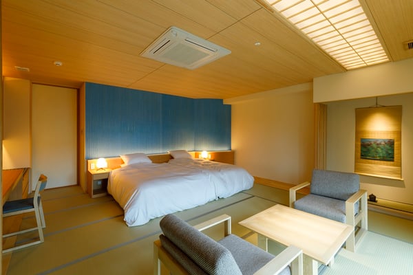 和の風情を残しながらもベッドで快適に眠れる「和洋室」