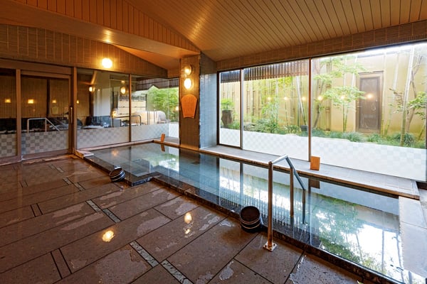 庭園に溶け込んだ姿に日本情緒が感じられる「福の湯」の庭園風呂