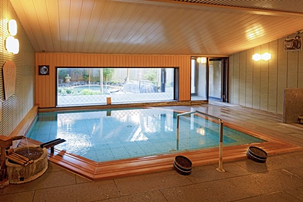 また、貸切風呂「つるの巣」(有料・要予約)は6名まで利用できるので、夫婦や家族でプライベートな湯浴みが可能です。竹林の庭を望む広々した湯船や木の香も漂う温もりなど、温泉情緒が感じられるのも魅力のひとつです。