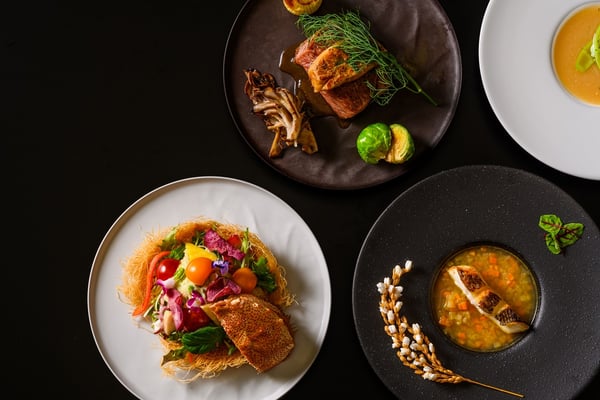 また、和食だけでなく加賀の伝統食材を使用したフレンチのフルコースもあります。フレンチの華やかさと加賀料理の上品さを融合させた料理は、目と舌で楽しめる逸品ばかり。連泊するときは、和食とフレンチの両方で加賀の味覚を楽しんでみたいですね