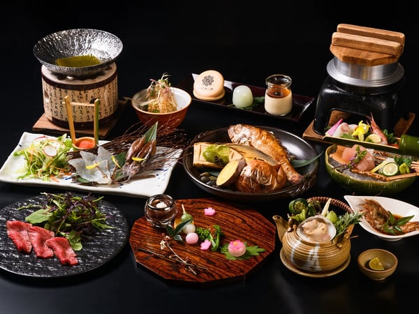 鮮魚やカニ、能登牛など加賀の美味を贅沢な会席料理で堪能