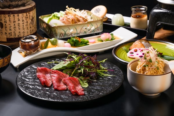 料理長が食材選びから調理法までこだわり、伝統的な日本料理や洋風の創作料理など趣向を凝らしたメニューが季節ごとに替わる「最高ランク懐石」。旬の食材や手仕事を織り交ぜたワンランク上の料理が揃う「菊華会席」は、旬の美味を満喫したい方におすすめです。