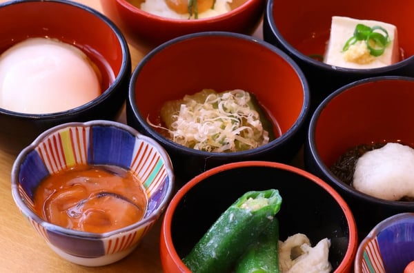 「天然温泉 加賀の宝泉 御宿野乃金沢」の朝食は、種類豊富な和洋バイキングと一口サイズの小鉢で多彩な味が楽しめる「味巡り小鉢横丁」に加えて、ご当地逸品料理「お好み海鮮丼」が人気を集めています。
