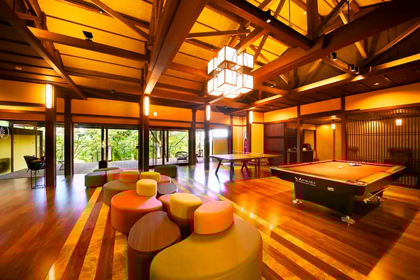 また、2023年5月に館内にオープンしたGameラウンジ-可惜夜ATARAYOは、予約不要で宿泊者なら自由に利用できる遊びの空間。ダーツ・ビリヤード・卓球の各設備が用意され気軽に楽しめます。もちろん、ゲームをやらなくても無料のコーヒーサービスがあるので、室内のソファやテラスのハンモックでのんびり過ごすこともできます。