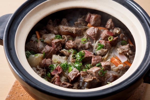 「湖畔の宿 森本」では、能登牛陶板焼きが食膳に並ぶ基本懐石やランクアップ特選懐石のほか、1頭からわずかしかとれない能登牛のシャトーブリアンステーキが登場する「能登牛Premium懐石」に、ヒレステーキとサーロインステーキで能登牛の味比べをし、しゃぶしゃぶとすき焼きから選べる「能登牛懐石」など、多彩な懐石コースが用意されています。霜降りの甘みと香り、柔らかくとろけるような食感の「能登牛の土鍋ご飯」は、懐石料理の締めに欠かせない名物料理。能登牛の魅力を存分にご堪能ください。