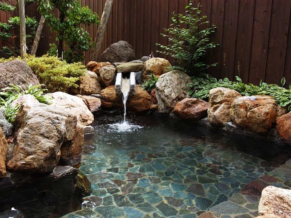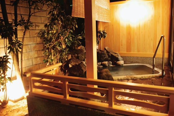 岩が囲む湯船にカラダを沈めてのんびり湯浴みができる「月かげの湯」