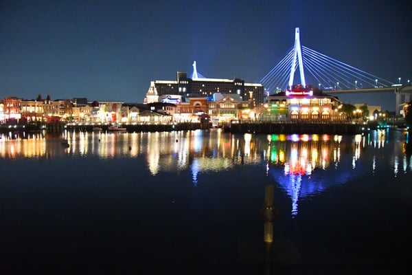 パーク中央の大きなラグーンは、イルミネーションの灯りが反射してとても綺麗でした。落ち着いて夜景を楽しめるのもプレミアムナイトの魅力のひとつ。