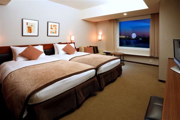 スタンダードフロアにある3タイプの客室のひとつ、ハーモニールームは32㎡の広さがあり、ベッドはワイドシングルの110㎝。荷物や洋風を収納するクロークがあるので室内が狭く感じることがなく、スーツケースを広げても余裕があるなど、空間を上手に使えるので、家族みんなの荷物があってもゆったりくつろげました。
