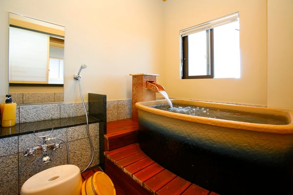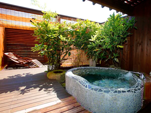 室内の趣や浴槽のデザインが異なる4つの客室から選べる露天風呂付客室
