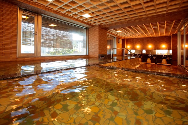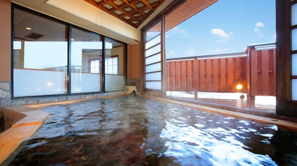 2面に広がる景色を望む、露天風呂を併設した大浴場(男湯)