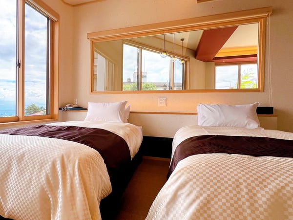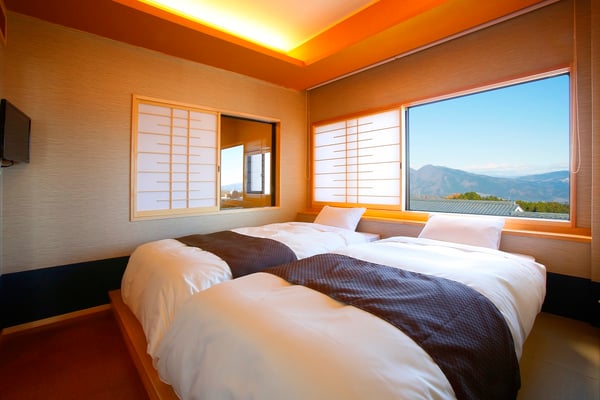 また、露天風呂ではないものの窓から望む雄大な自然の景観が美しい展望客室も用意。上州の山々が眺められる最上階の温泉付展望客室をはじめ、和洋折衷の落ち着きと快適性を兼ね備えた和モダンスイート、榛名山の景観と伊香保温泉街の夜景が楽しめるヒノキの風呂付き展望客室など、温泉と眺望を独占しながらのんびりと思いのままに安らげます。
